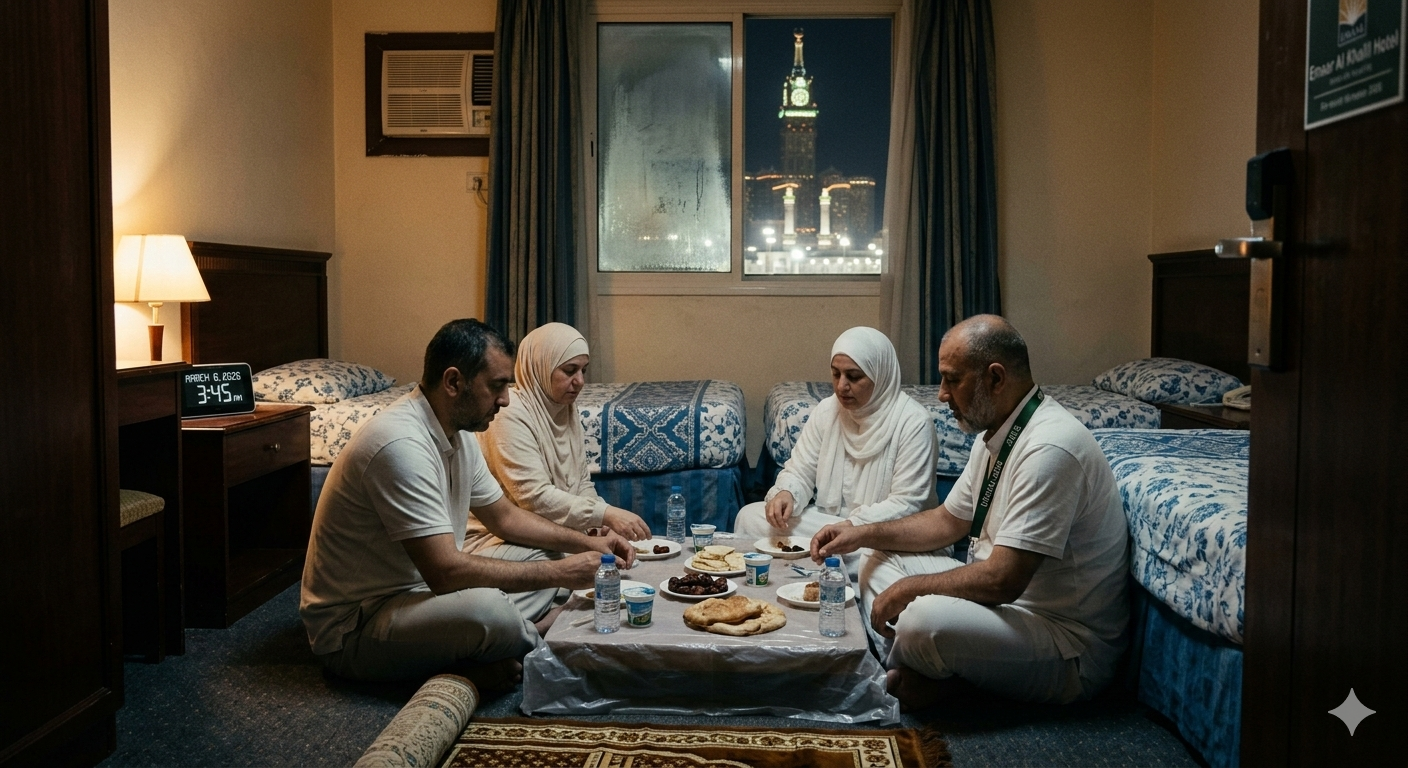 Budgeting: 3-star packages often exclude meals. Budget approximately £15–£25 per day for food, though many masjids and locals provide free Iftar spreads in the Haram courtyards.